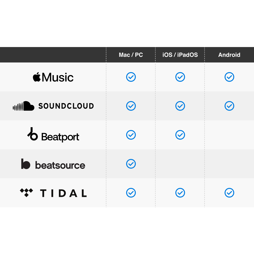 rekordbox is compatible with a choice of streaming services. So, you can choose from millions of tracks available on the TIDAL, Beatport Streaming, Beatsource Streaming, and SoundCloud Go+ platforms (subscriptions required) and mix them together on the DDJ-FLX4. You can also use all the effects and performance features to spice up your favorite songs and create your own sound.