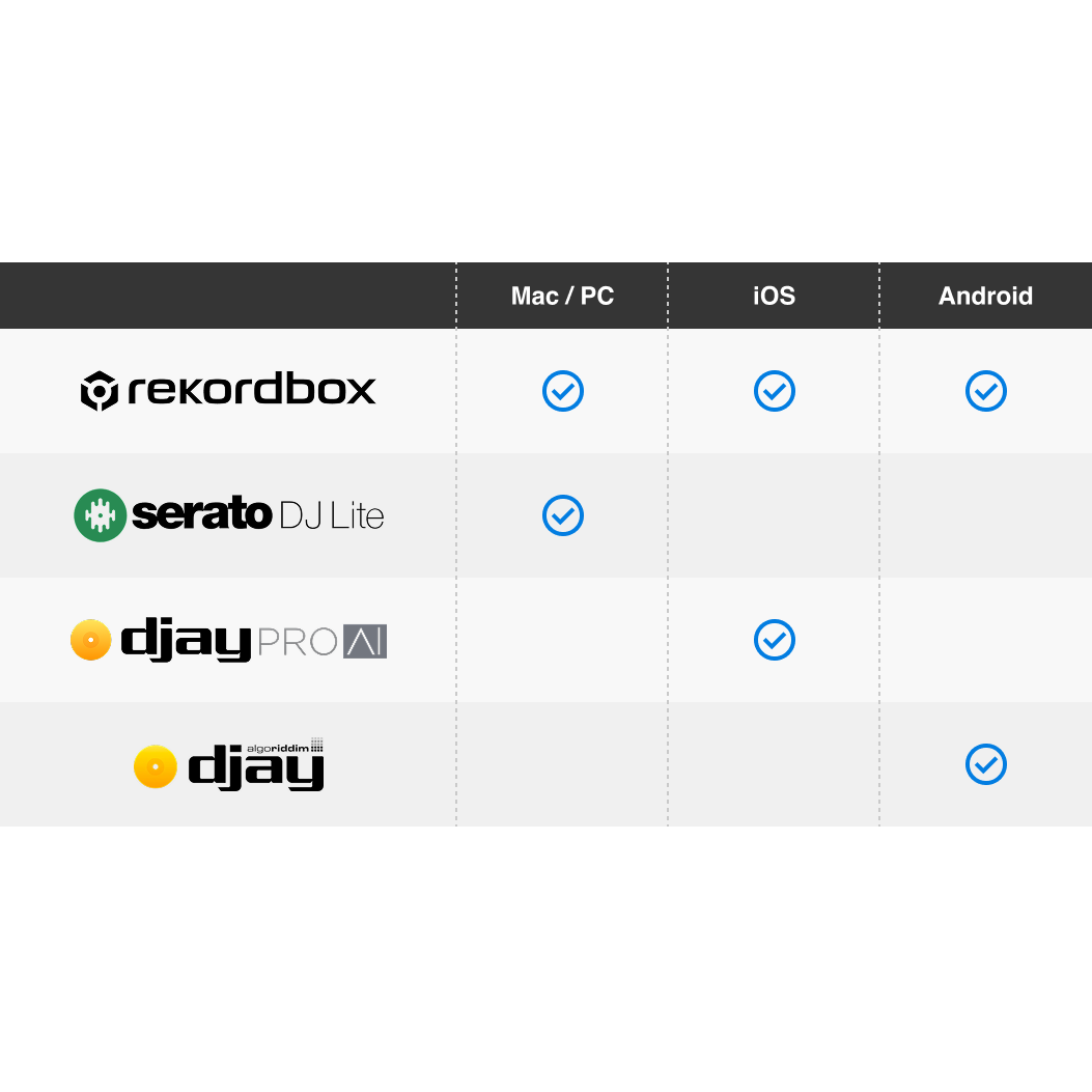 You can use the DJ software rekordbox, Serato DJ Lite and djay for free by connecting your PC/Mac to the DDJ-FLX4 to complete your DJ setup. And if you want to upgrade to Serato DJ Pro, you can buy a license or subscription for the premium version of the software.